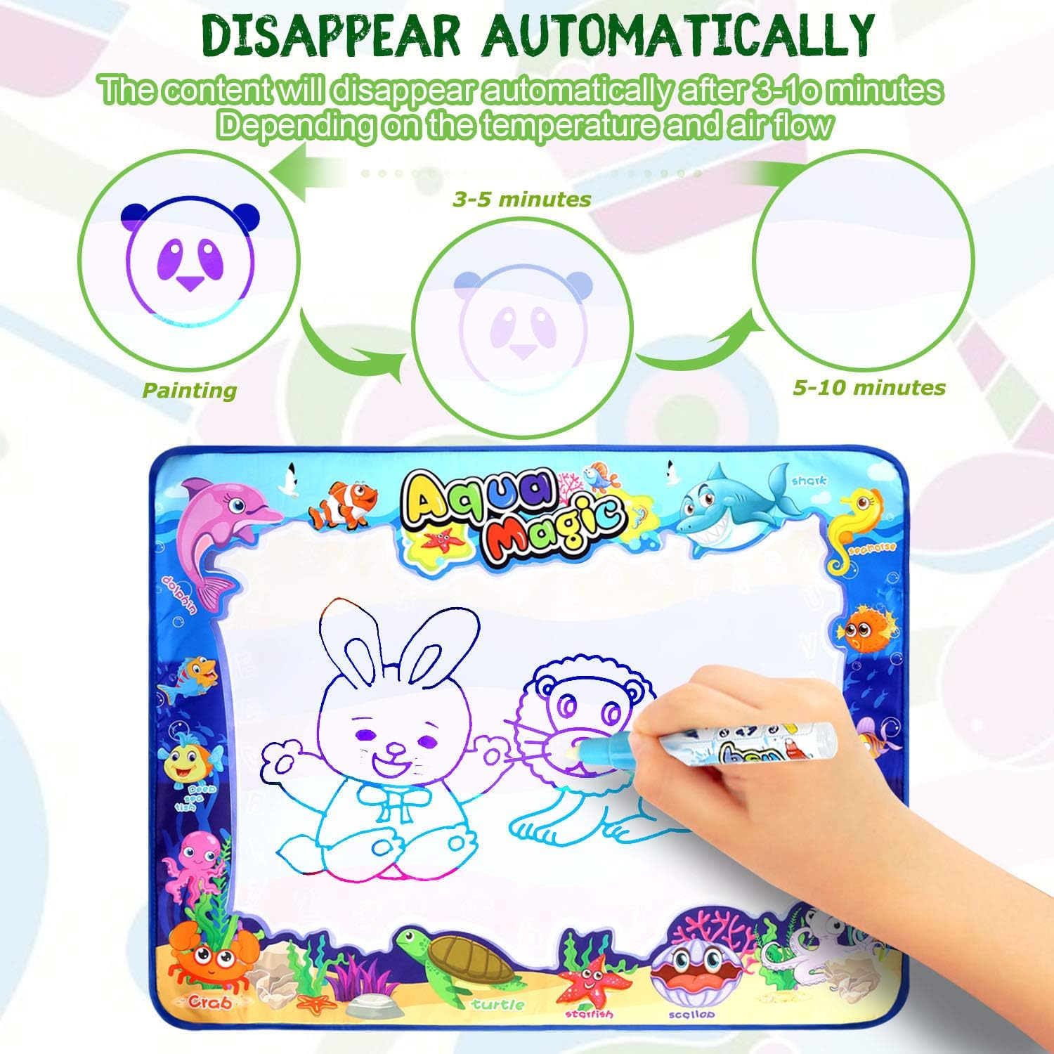 The water color mat is designed for repeated use, allowing kids to draw, doodle, and paint again and again. Simply fill the water pen, and let your child’s imagination take over. The durable construction ensures it withstands frequent use, making it a long-lasting addition to your child’s toy collection